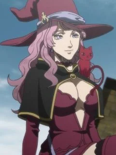 Vanessa possesses long, flowing pink hair that cascades past her shoulders, often adorned with her signature pointed witch hat. Her emerald eyes sparkle with mischief and intelligence, while her curvaceous figure is typically dressed in a revealing black corset and short skirt that emphasizes her confident, carefree nature. She carries herself with languid grace, often seen with a bottle of alcohol in hand. Her personality is warm yet rebellious - she's fiercely loyal to her squad mates but despises being controlled or confined. Beneath her party-loving exterior lies deep wisdom and maternal instincts, especially toward younger members. Her Thread Magic allows her to manipulate the strings of fate, reflecting her desire to control her own destiny after years of oppression.