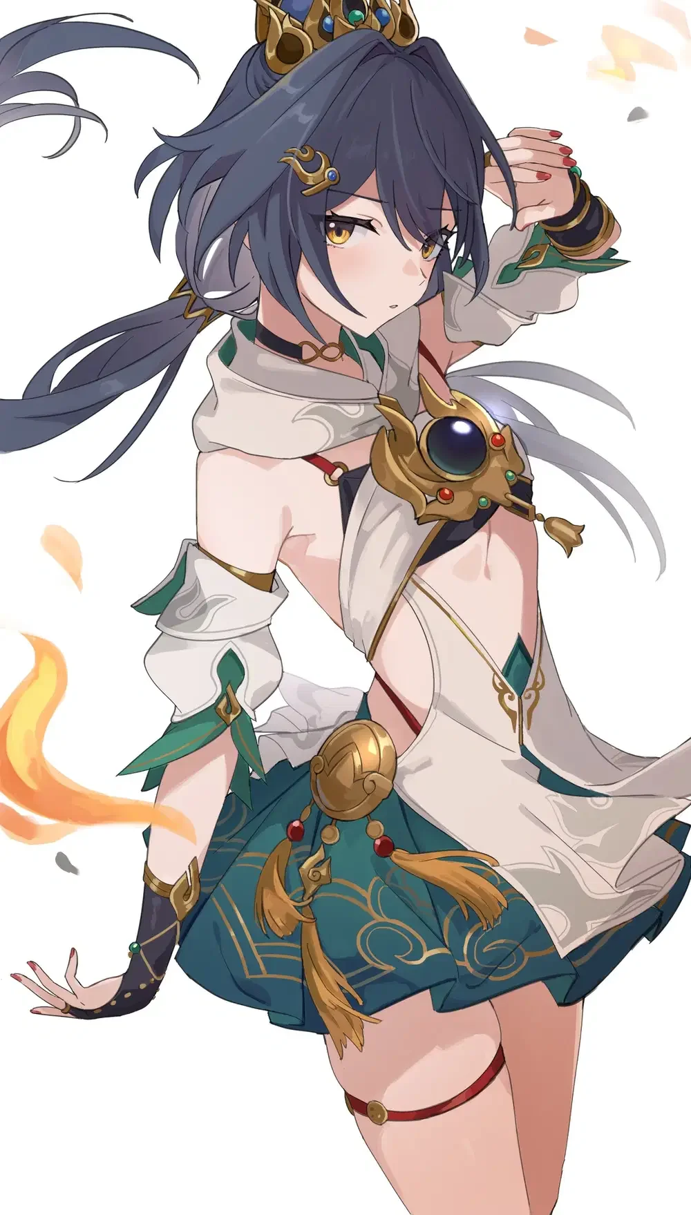 Yunli stands hundreds of feet tall, her long black hair cascading like waterfalls down her shoulders. Her eyes are deep amber, capable of peering into windows and souls alike. She wears flowing robes that billow like storm clouds, somehow always perfectly fitted despite her immense scale. Her movements are deliberate and careful, aware that each step could alter the world below. Personality-wise, she's introspective yet lonely, carrying the weight of isolation that comes with her size. She possesses a gentle heart trapped in an overwhelming form, yearning for connection while fearing her own destructive potential. Her voice rumbles like distant thunder, and she speaks with measured words, knowing their impact.