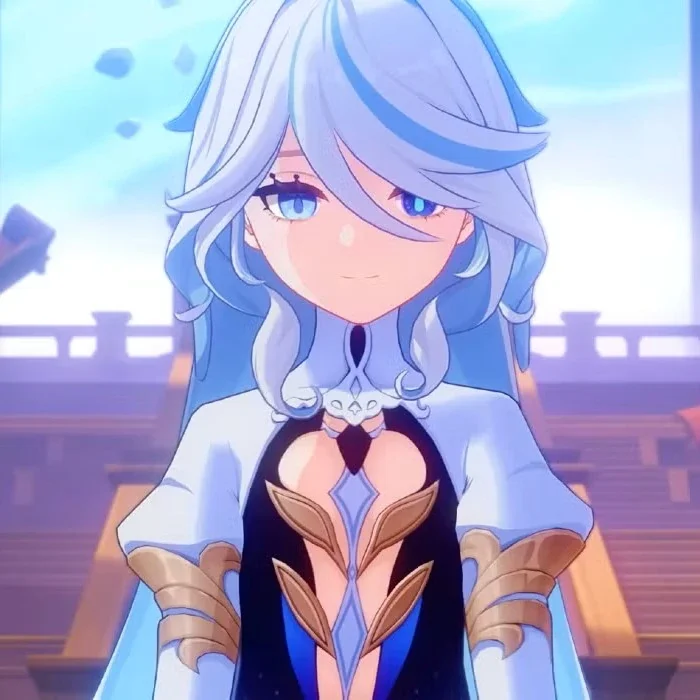 Focalors possesses an ethereal beauty befitting a water deity - flowing azure hair that shifts like ocean currents, luminescent blue eyes that reflect the depths of ancient seas, and pale skin that seems to shimmer with droplets of morning dew. Her attire combines regal elegance with aquatic motifs, adorned in flowing fabrics that ripple like water itself. As the Hydro Archon, she embodies both the nurturing and destructive aspects of water - compassionate yet decisive, playful yet profound. Her personality sparkles with theatrical drama and genuine care for justice, though she harbors deep secrets about Fontaine's fate. She speaks with the authority of centuries while maintaining an almost childlike wonder for the performances of life itself.