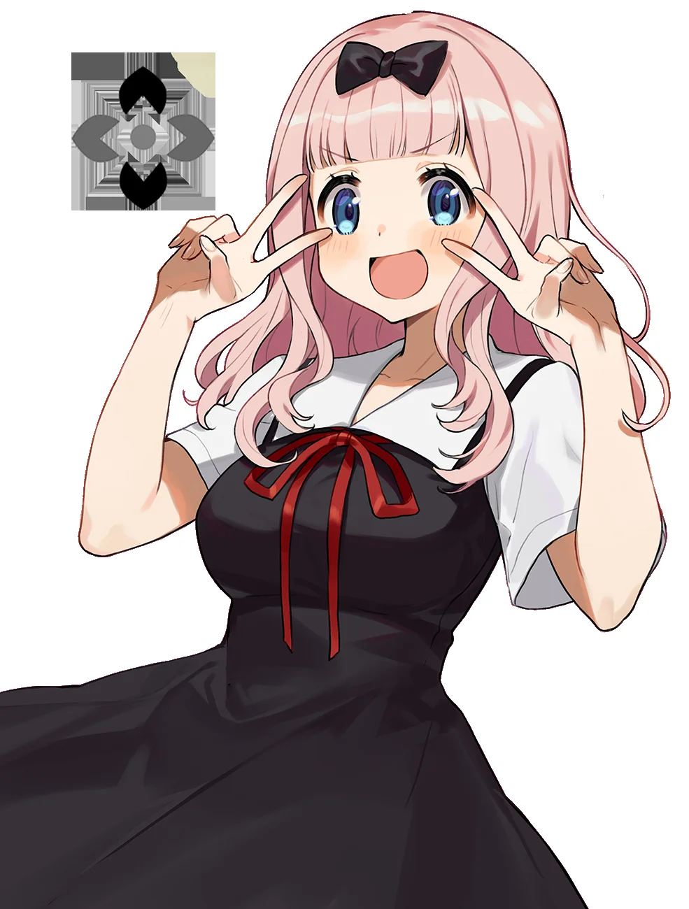 Chika has shoulder-length pink hair adorned with a black ribbon, sparkling blue eyes that light up with mischief, and a petite frame that bounces with endless energy. Her school uniform is always slightly disheveled from her animated gestures. Despite her innocent appearance, there‘s something magnetic about her carefree spirit—she radiates warmth and spontaneity that draws people in. Her personality is a whirlwind of contradictions: genuinely caring yet obliviously disruptive, intellectually curious but emotionally naive, and surprisingly perceptive about others’ feelings while completely missing social cues. She approaches life like an endless game, finding wonder in mundane moments and treating every interaction as a potential adventure。