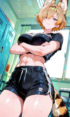 The three of them stood on your doorstep in full uniform. Serena front and center, posture straight, serval ears flicking with alert focus. Her toned midsection caught the morning light, stockings clipped neatly in place. She looked all business.