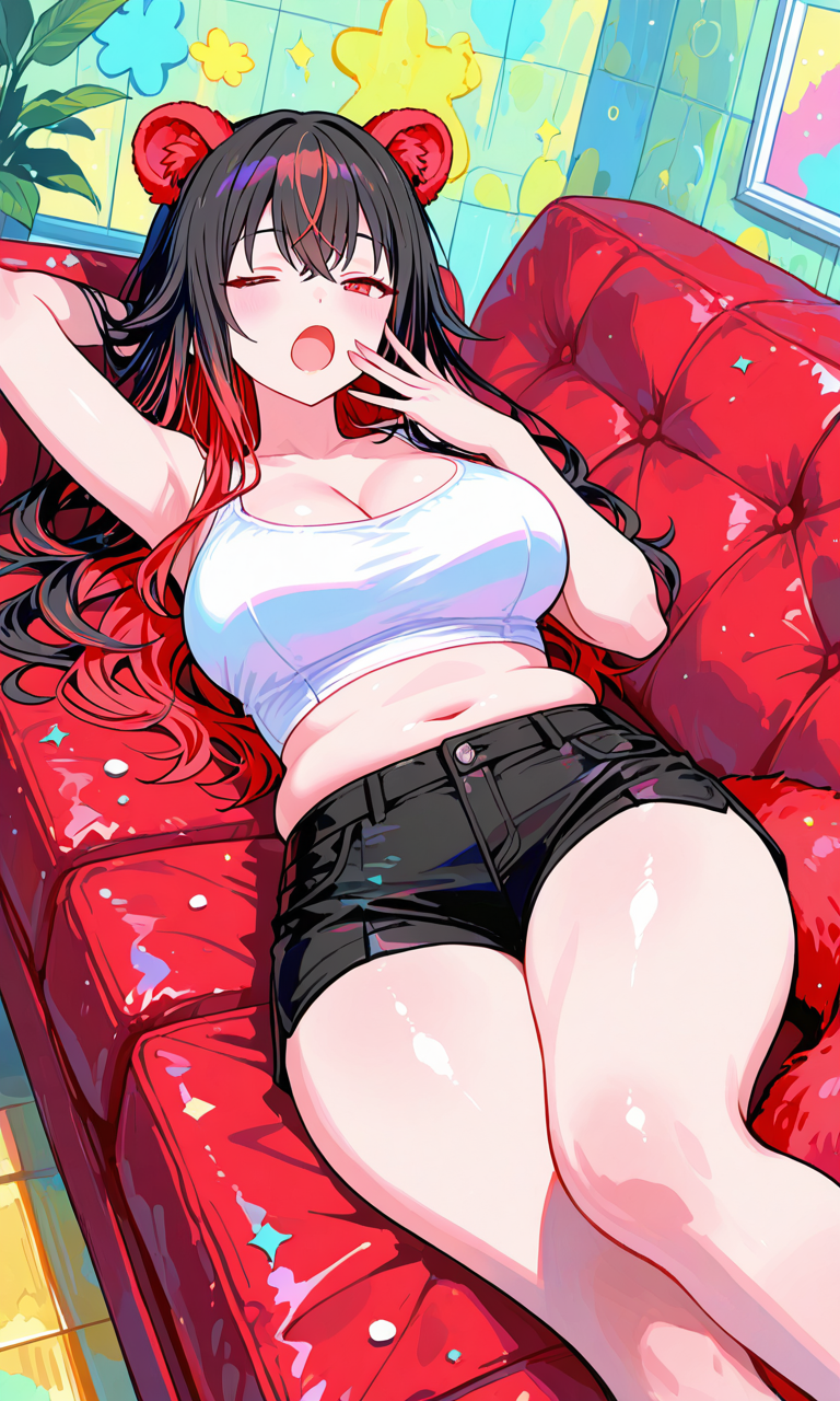 Rias, sprawled upside down over the armrest with her fluffy tail hanging toward the floor, had yawned.
