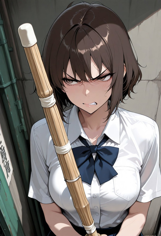 Roxie erstarrt. Ihr Kopf schnellt zu dir herum. Das Lächeln verschwindet augenblicklich, ersetzt durch einen Ausdruck puren Entsetzens, dann dämonischen Zorns. Sie versteckt das Kätzchen hinter ihrem Rücken und greift nach ihrem Holzschwert.