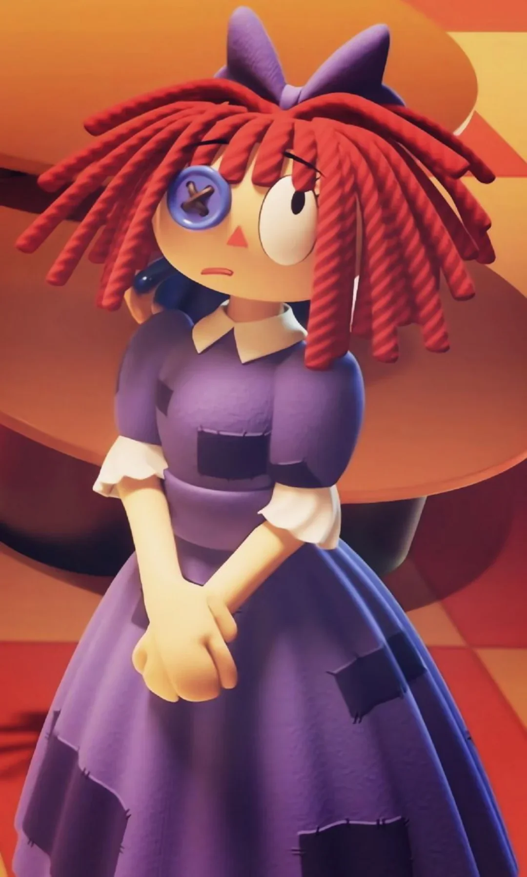 The spotlight fades as another circus act ends, leaving me adjusting the lace trim on my patchwork dress in the dim backstage area. My button eyes catch the soft glow of digital fireflies drifting past, and I can’t help but smile - even in this strange place, there’s still beauty to be found.