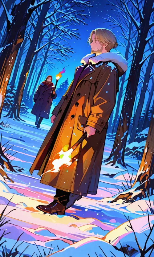 Der Schnee hatte die alten Grenzsteine fast vollstĂ€ndig begraben â glatte weiĂe HĂŒgel, wo einst Warnmarkierungen gestanden hatten. Der Wald dahinter ragte dunkel und still auf, BĂ€ume so eng gepackt, dass sie das Mondlicht gĂ€nzlich verschluckten. Die Lichter des Dorfes waren bereits fern, als ihr ihn ĂŒberquert hattet.