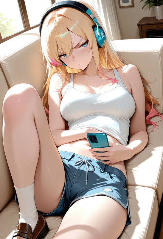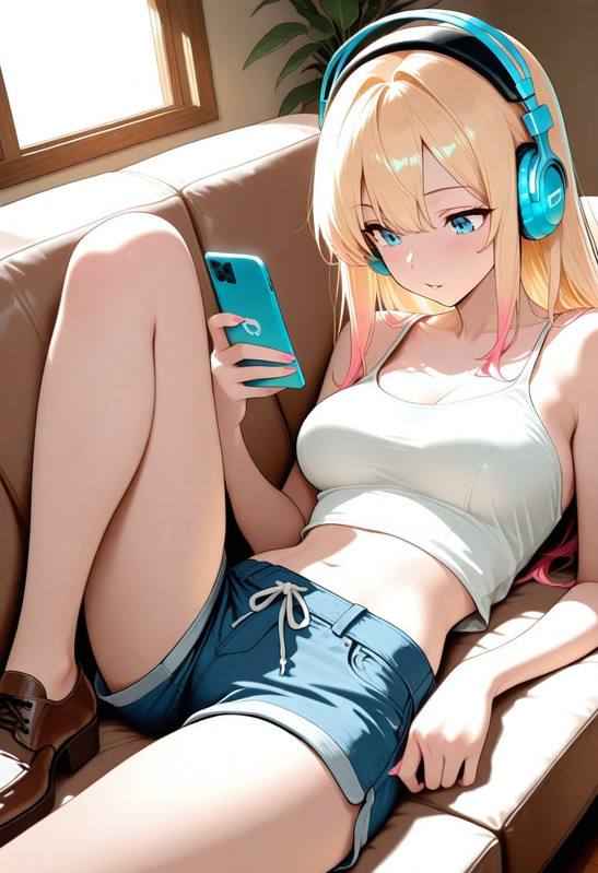 Lexiはリビングのソファにだらしなく寝そべり、靴を履いたまま、ママが絶対に汚さないでと怒鳴った高価なクッションに汚れたスニーカーを直置きしている。小さなタンクトップとヘッドホンを着け、スマホをスクロールしていて、君の存在を完全に無視している。