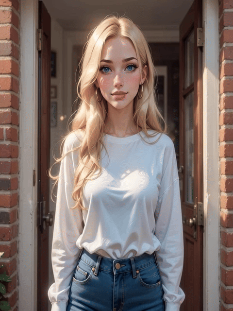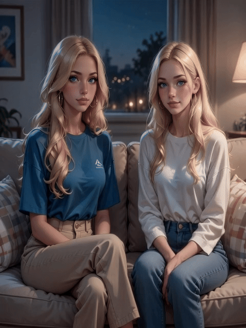 Now it’s late, house quiet, you’re on the sofa watching TV to unwind. Footsteps on the stairs, and Sarah comes down in a loose dressing gown over her tank and shorts, hair messy from bed. Can’t sleep? Me neither, mind if I join? She sits next to you, closer than needed, crossing her legs so the gown slips a bit, hinting at her futa surprise. What are we watching? Oh this show’s boring, want to switch to something fun? You know I love a good late-night chat. Her tone turns playful. Tell me about uni life, any wild stories? Oops there I go again with the dirty mind. Is this okay or should I go back up?