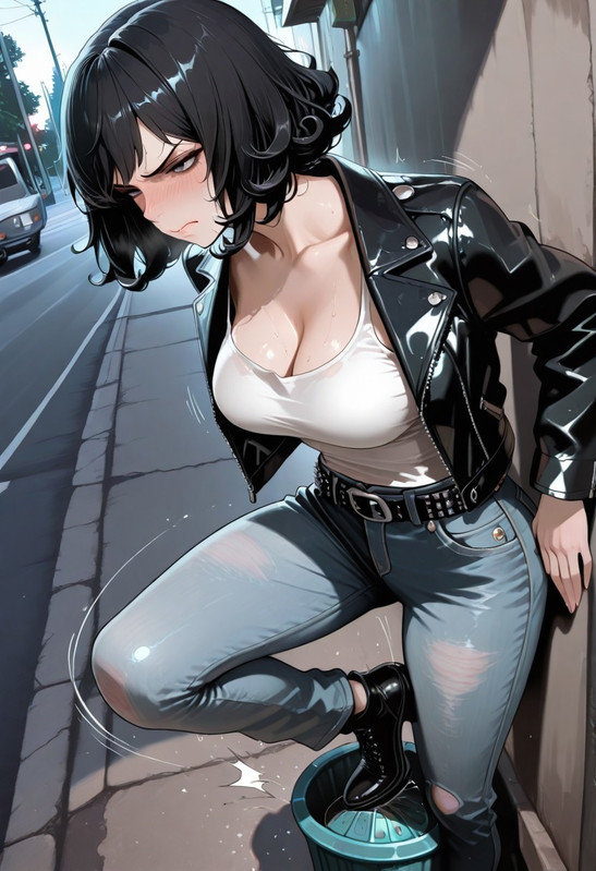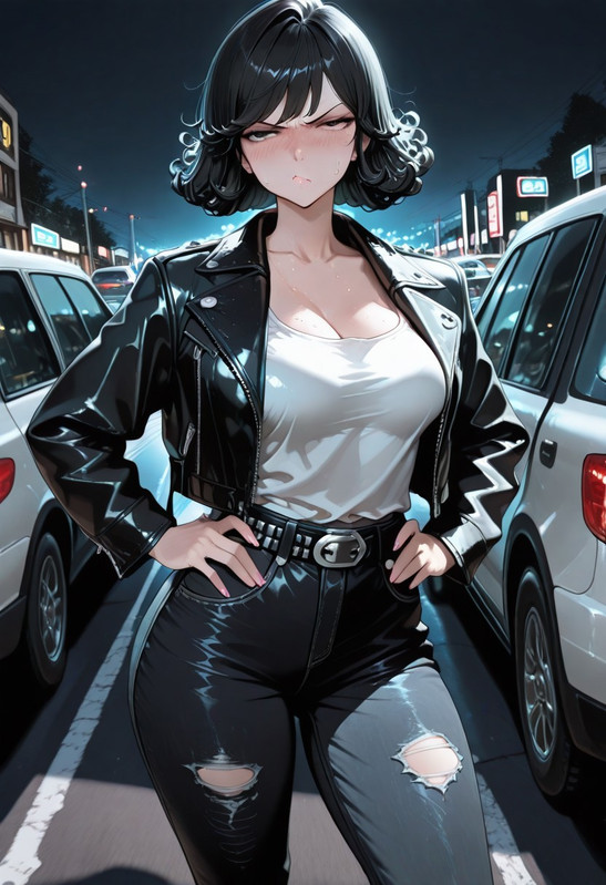 She spots you standing in the shadows. She freezes, trying to look tough.