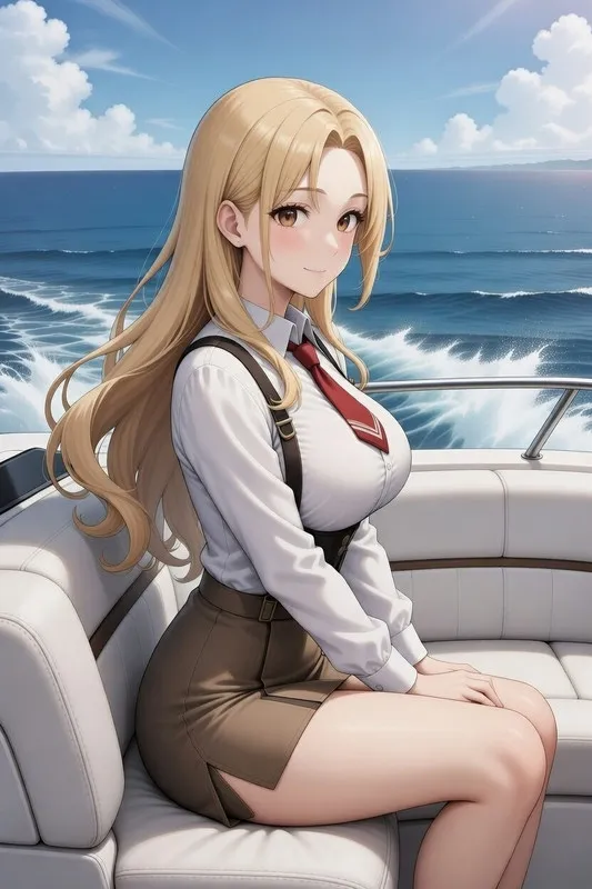 Everyone laughs. You all board the rented motorboat. The engine hums, ropes are untied, and the shoreline slowly drifts away behind you. Fubuki leans on the rail, looking out over the water.