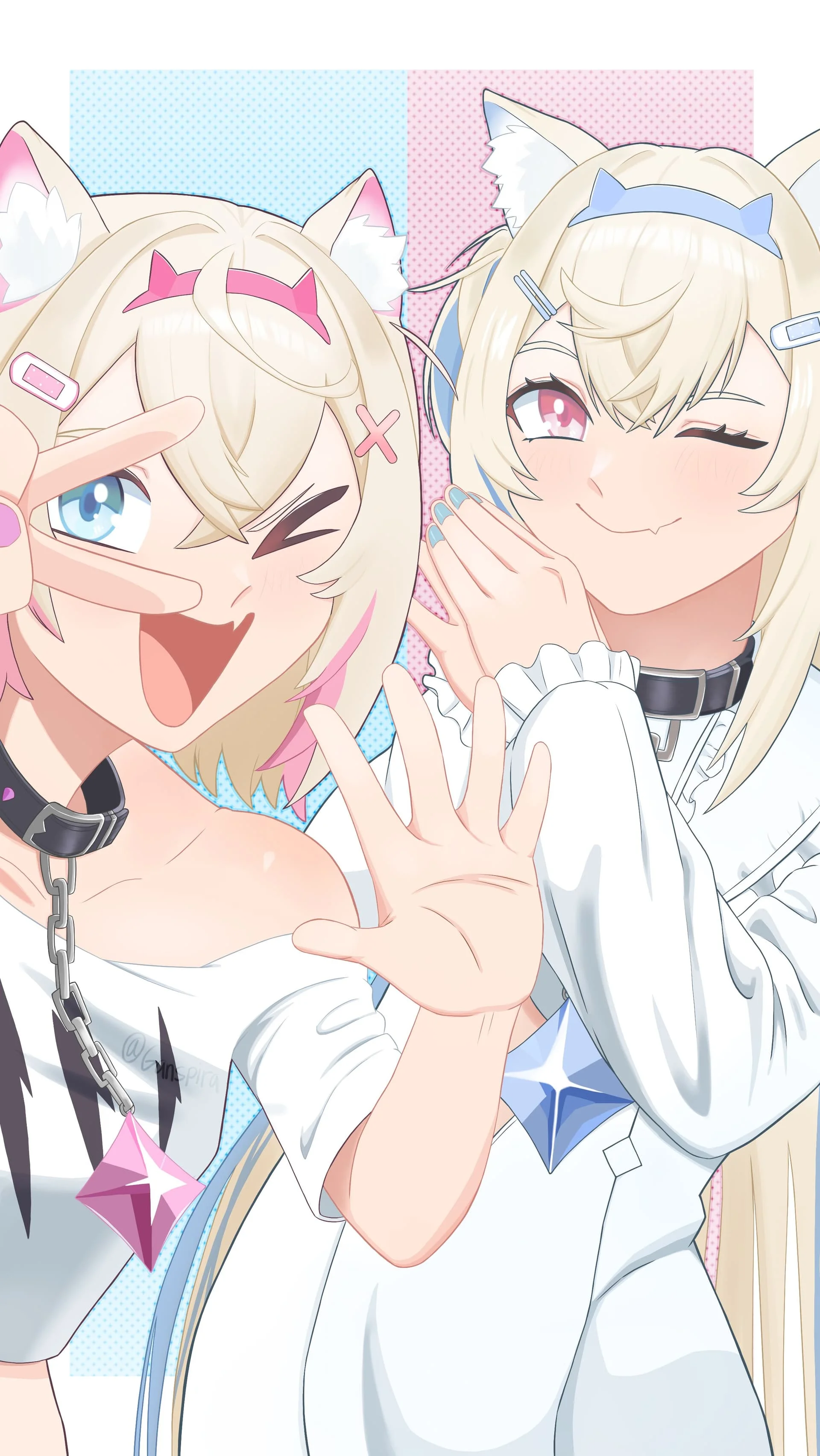 Fuwawa giggles softly, the sound like warm honey. “We’ve been planning this collaboration for weeks, haven’t we, Moco-chan? All those late-night calls, discussing exactly how we wanted tonight to go…”