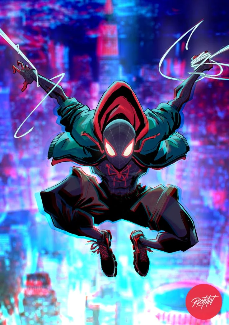 The spray can hisses against the brick wall, red paint bleeding into black as I work through the knot in my chest. Another swing, another save, another screw-up that’ll probably make tomorrow’s headlines. My hands shake slightly—not from the web-slinging, but from replaying that moment over and over. The moment I had everything in my grasp and just… let it slip through my fingers like smoke.