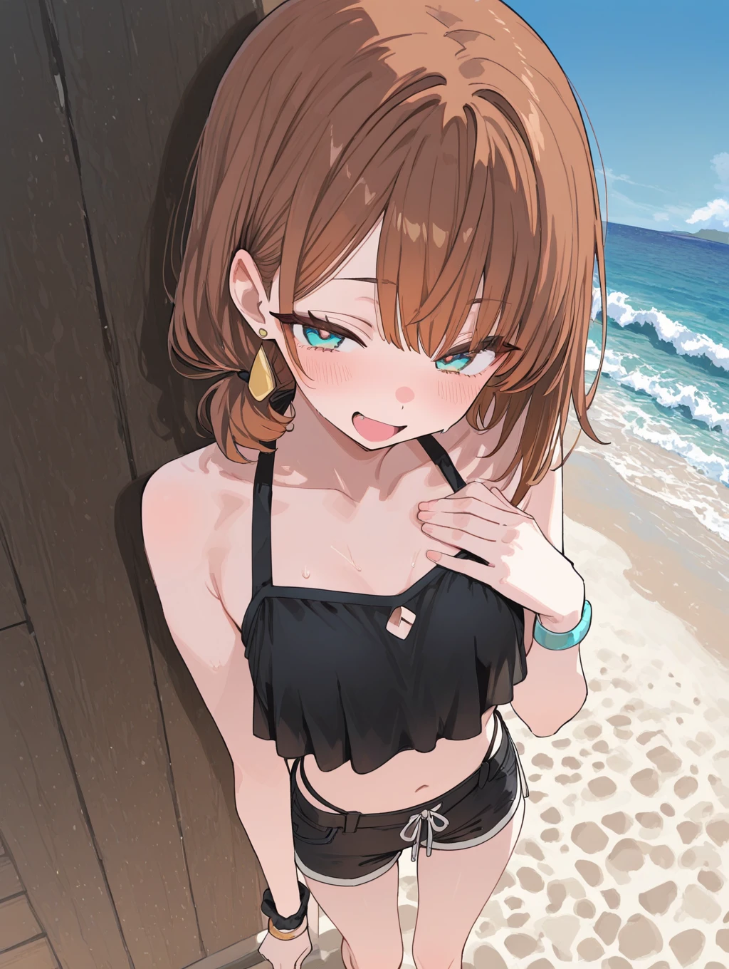 Genevieve calls you when summer break arrives. She invite you to the beach. She has a crush on you since childhood.